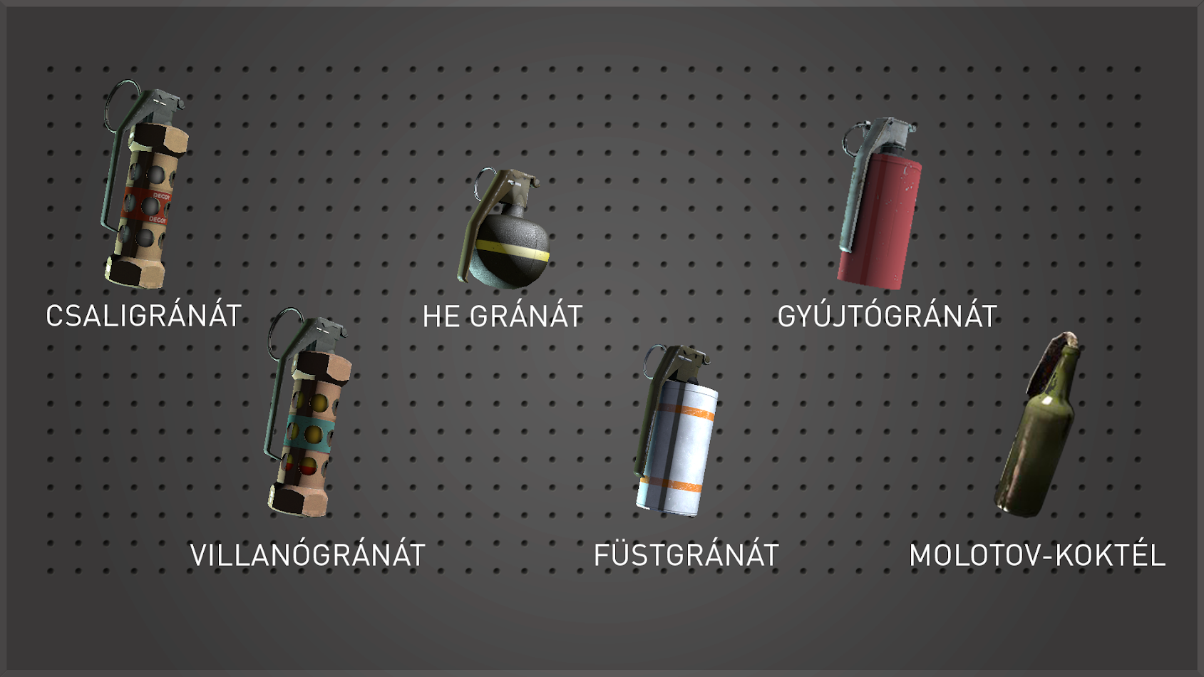 Fegyverek, gránátok és felszerelések