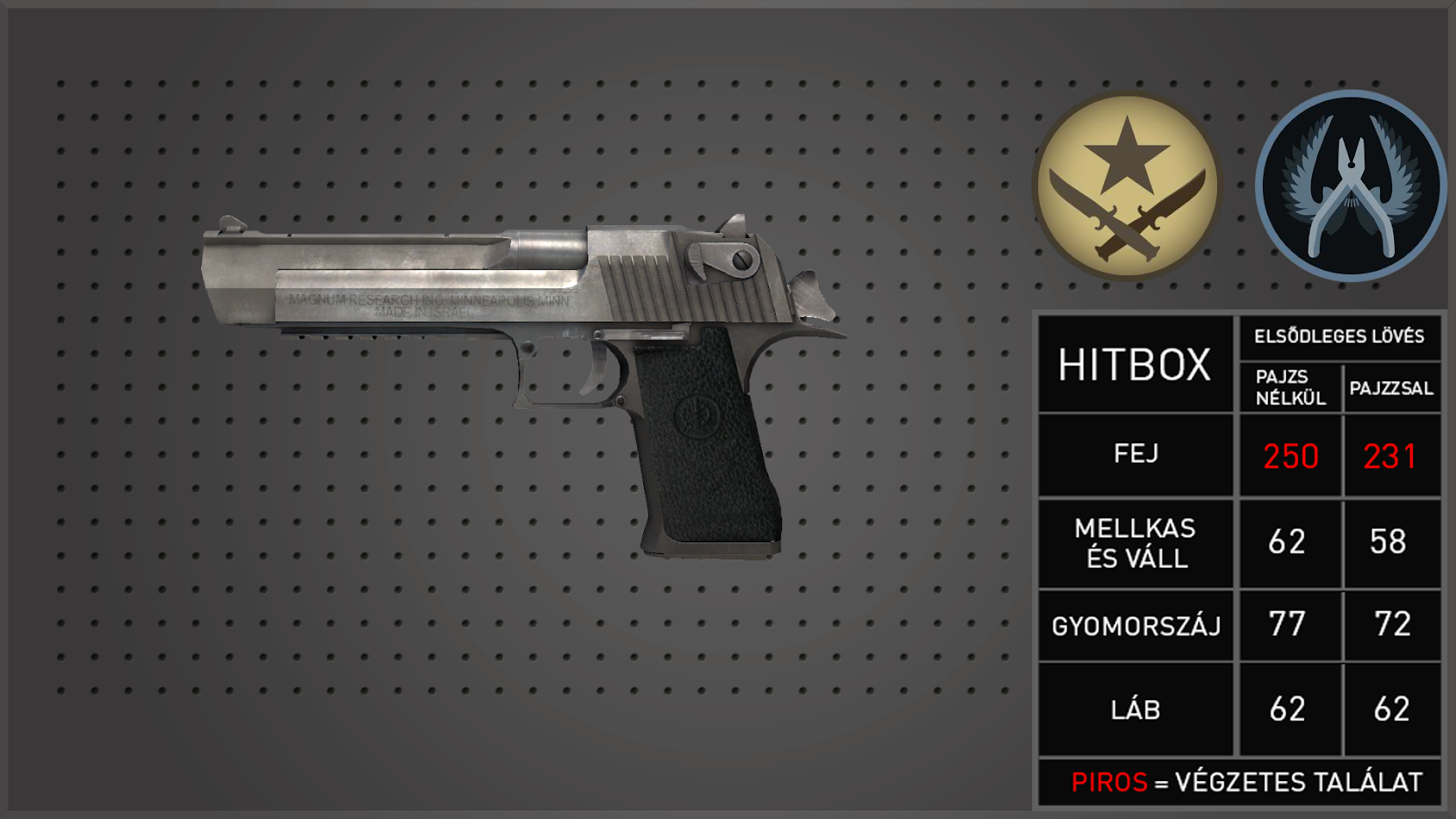 A legendás Desert Eagle pisztoly olyan erős, amilyen drága. Nehéz a mesterévé válni, de meglepően pontos nagy távolságra.