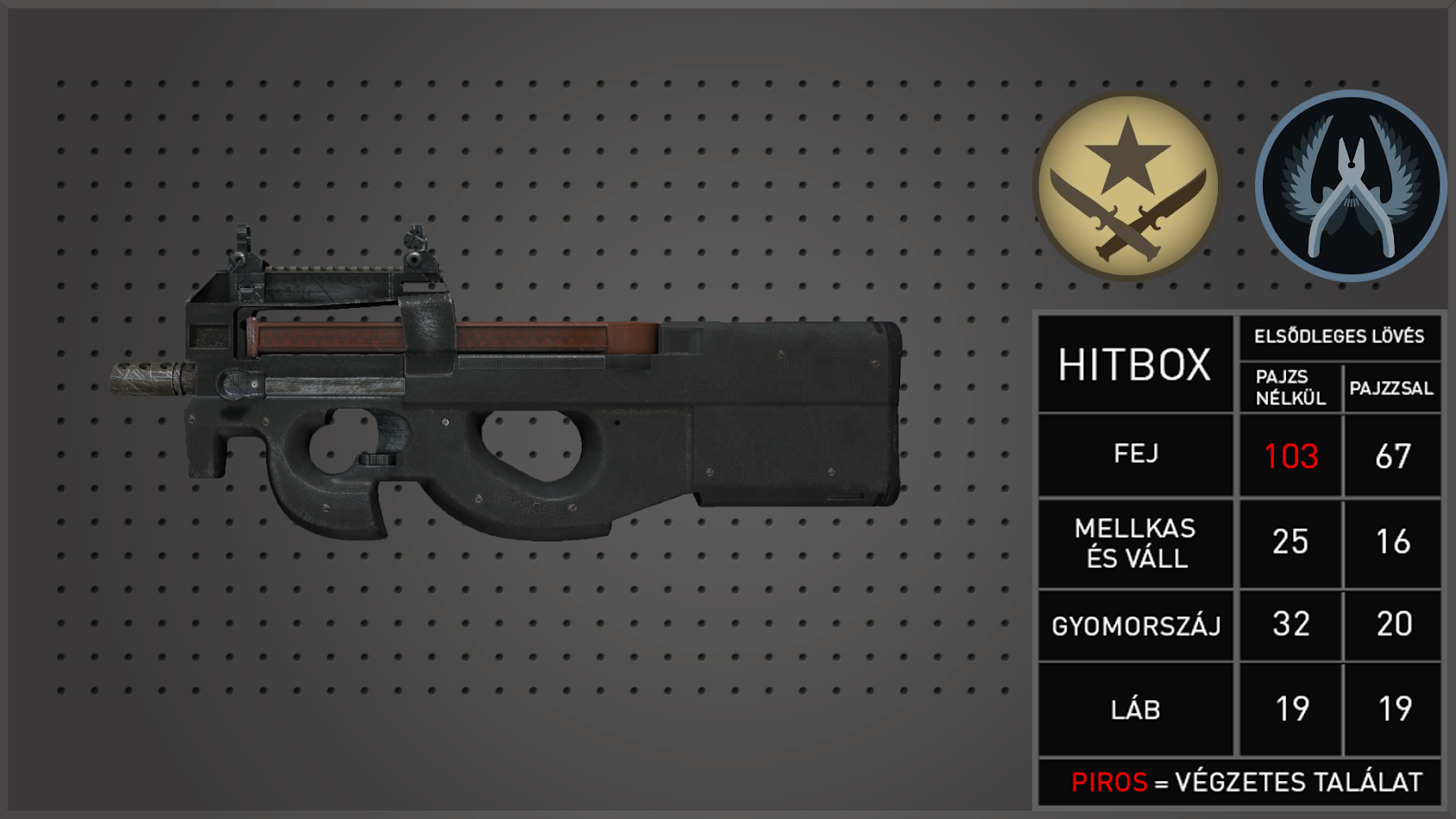A különleges hátsótáras felépítéséről könnyen felismerhető P90 nagyszerű fegyver mozgás közbeni tüzeléshez, nagy kapacitású tára és kis visszarúgása miatt.